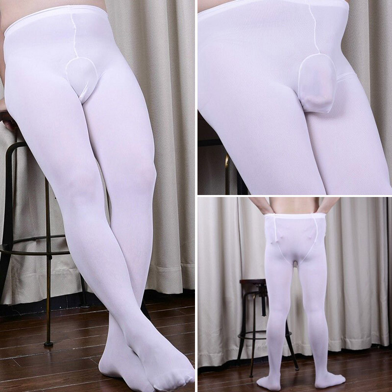 Men Ultrathin Pantyhose Oil Shiny Glossy Tights Sheath JJ Open/ Close Underwear