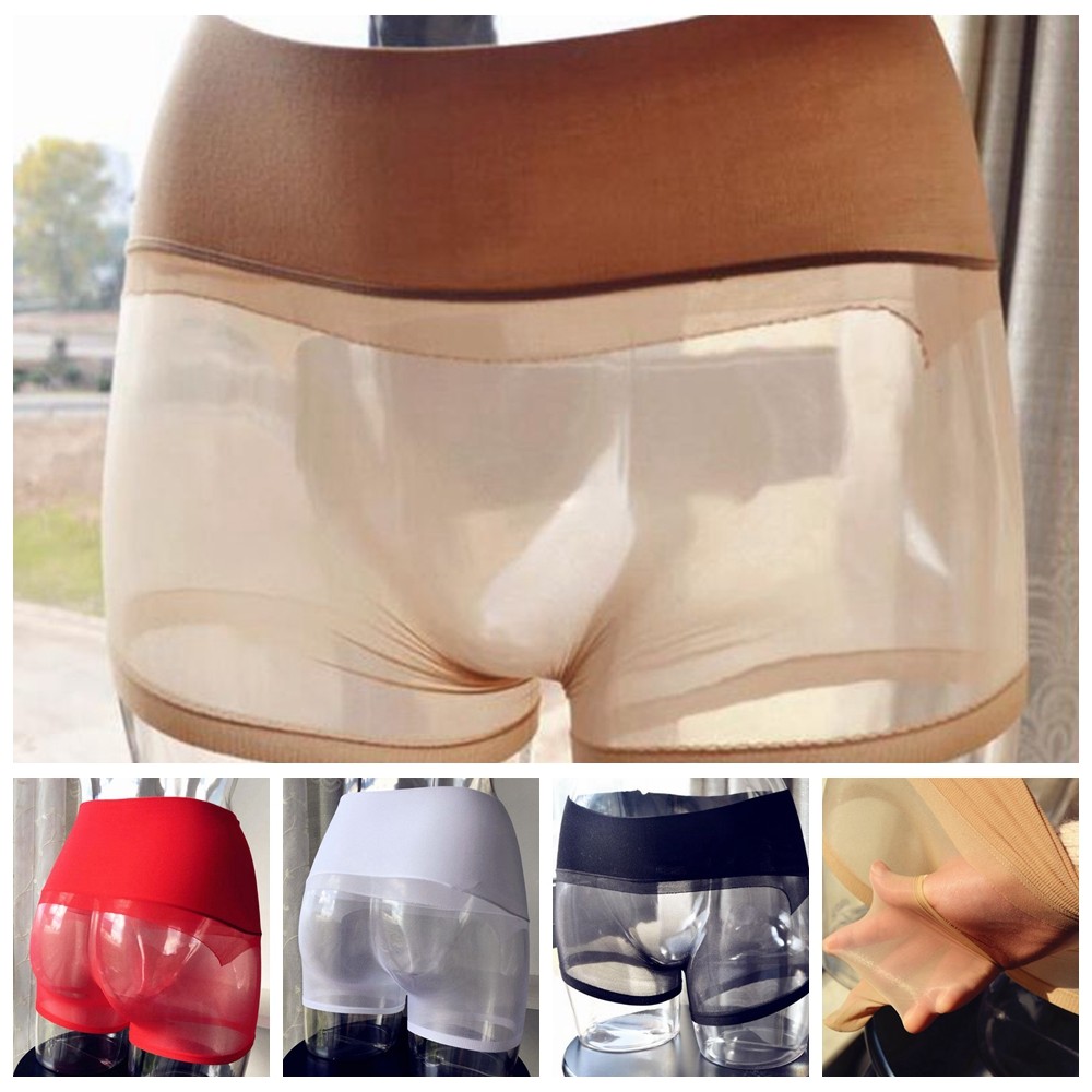 Men Seamless Sexy Velvet Sheer See-through Pantyhose Underwear Boxer Shorts
