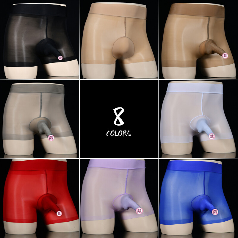 Sexy Men Oil Shiny Sheer Underwear Sheath Close/Open Glossy Panties Boxer Shorts