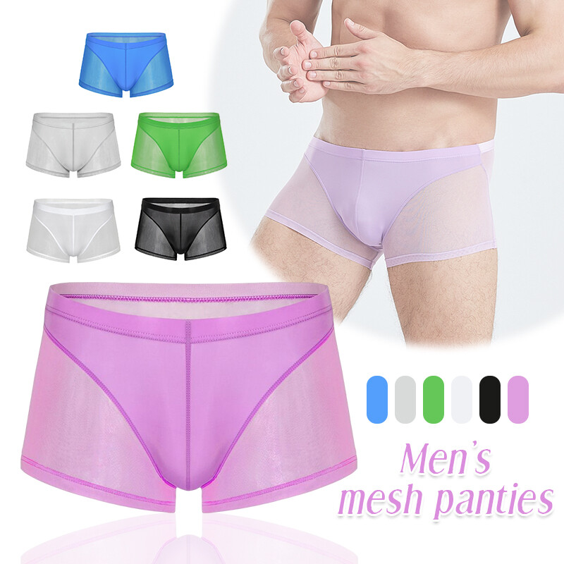 Men's Sexy Bikini Underwear Transparent Mesh Boxing Shorts Low Waist Underwear