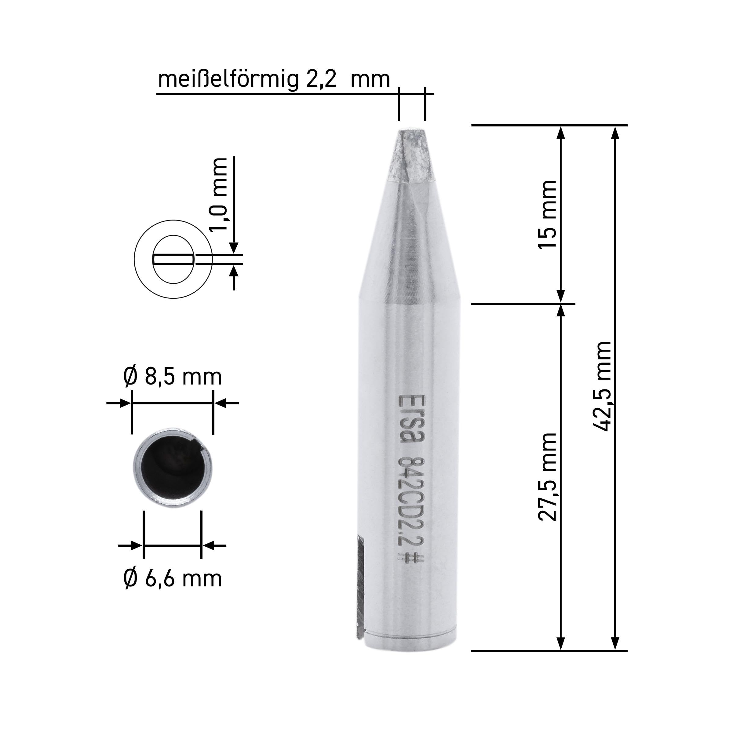Ersa 0842CD - Punta per stazioni di saldatura RDS80/Analog60/MS8000, dritta, a forma di scalpello