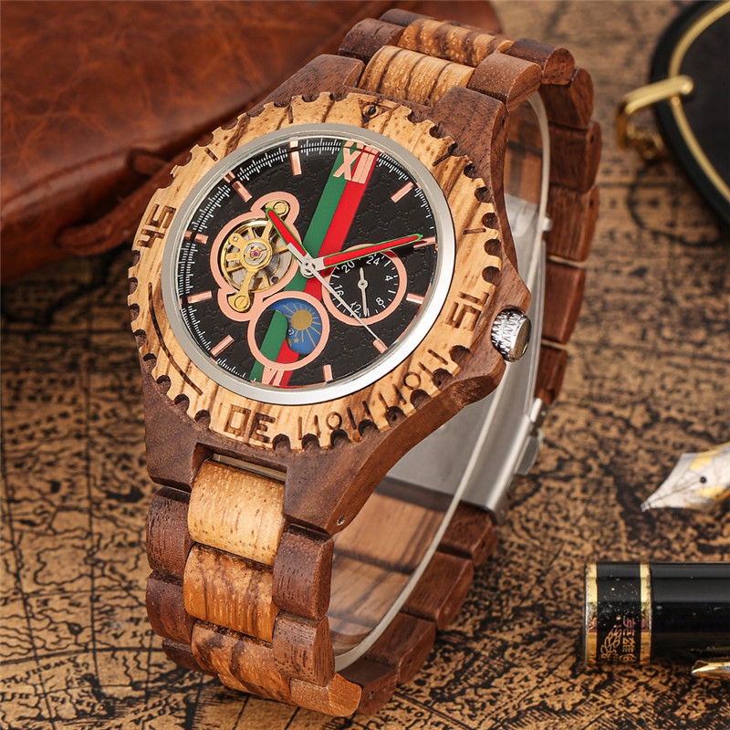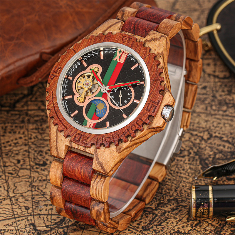 The watch is made from natural wood and is wrapped by hand, so it may have some natural harsh lines and a few blemishes.