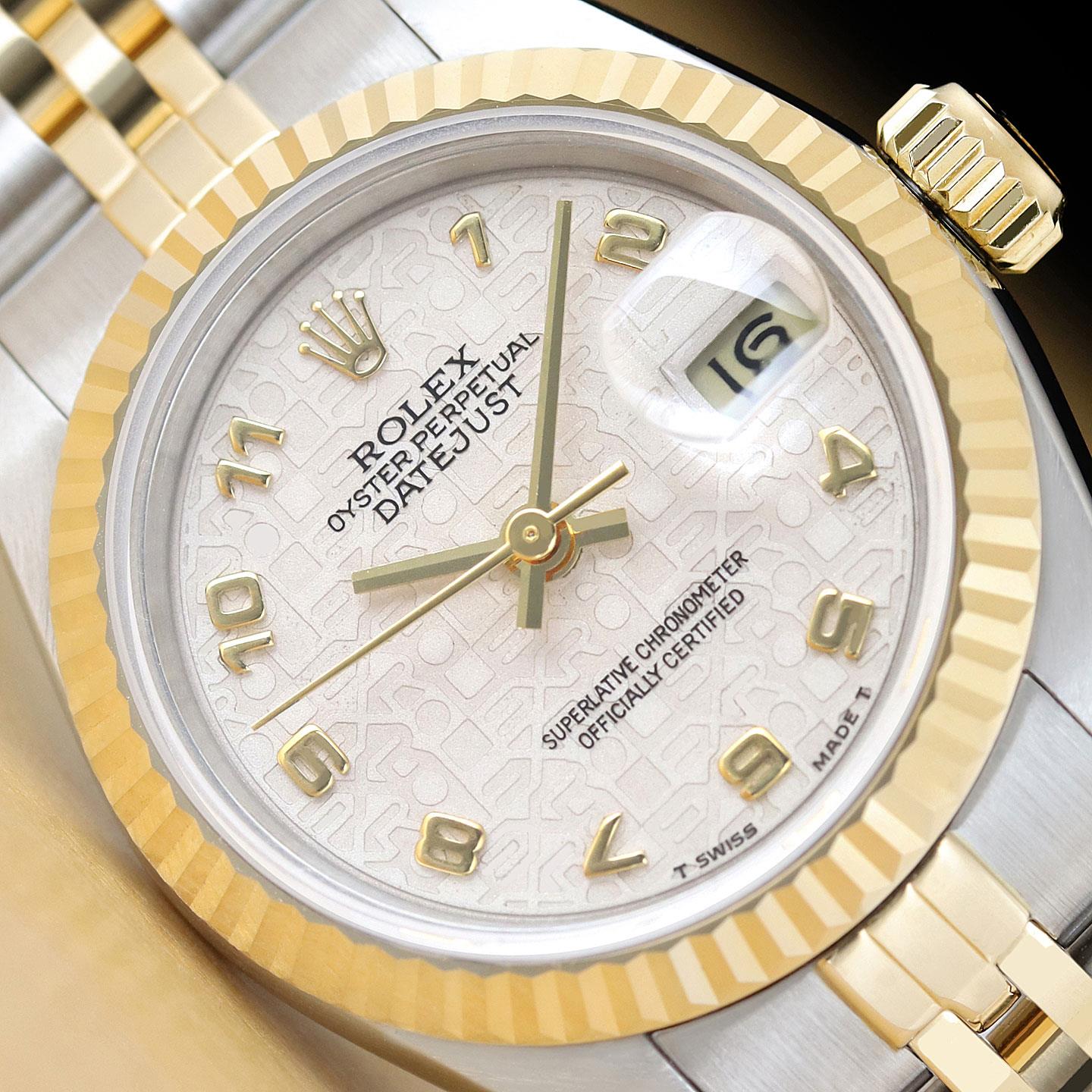 ROLEX LADIES DATEJUST 69173 CREAM ARABIC 18K YELLOW GOLD STEEL 2-TONE WATCH