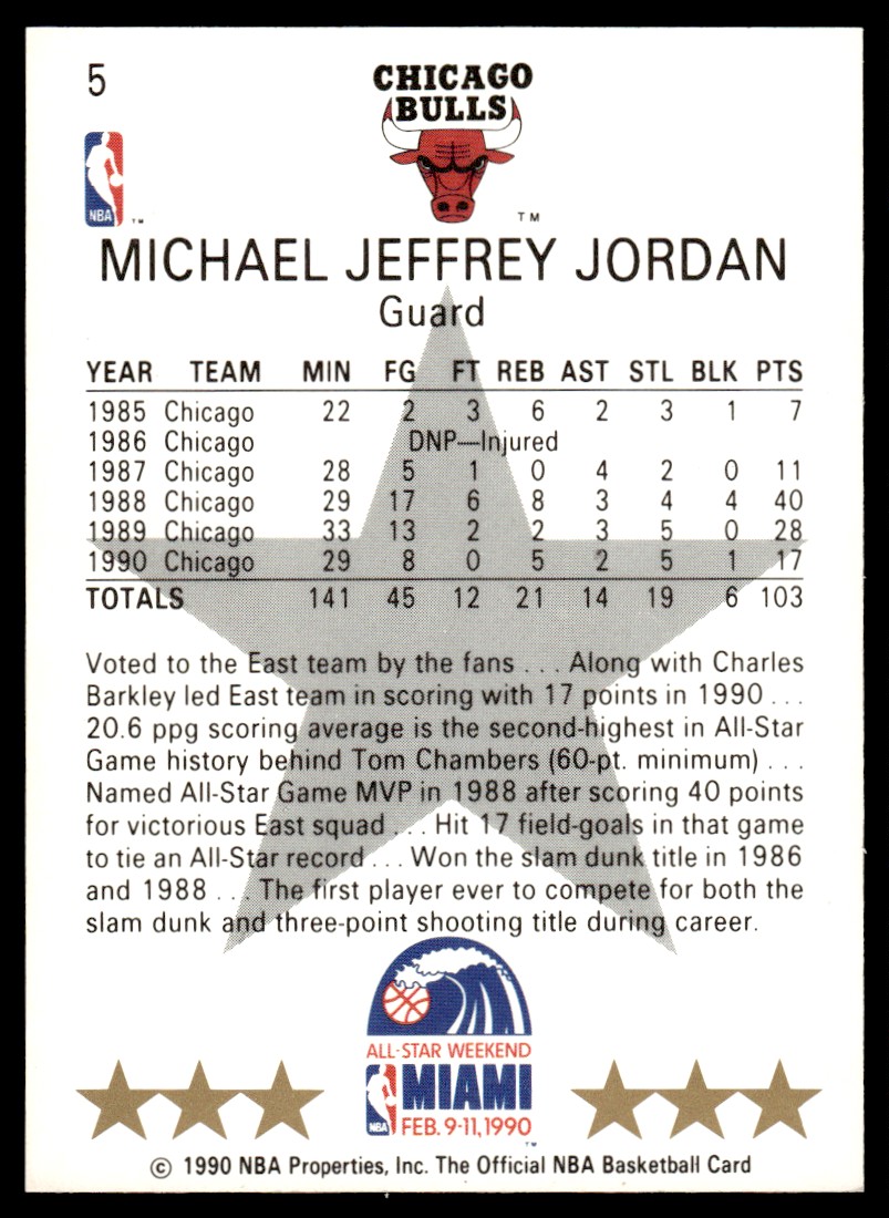 | 1990-91 Hoops Michael Jordan Chicago Bulls #5 | ||||||||||||||||