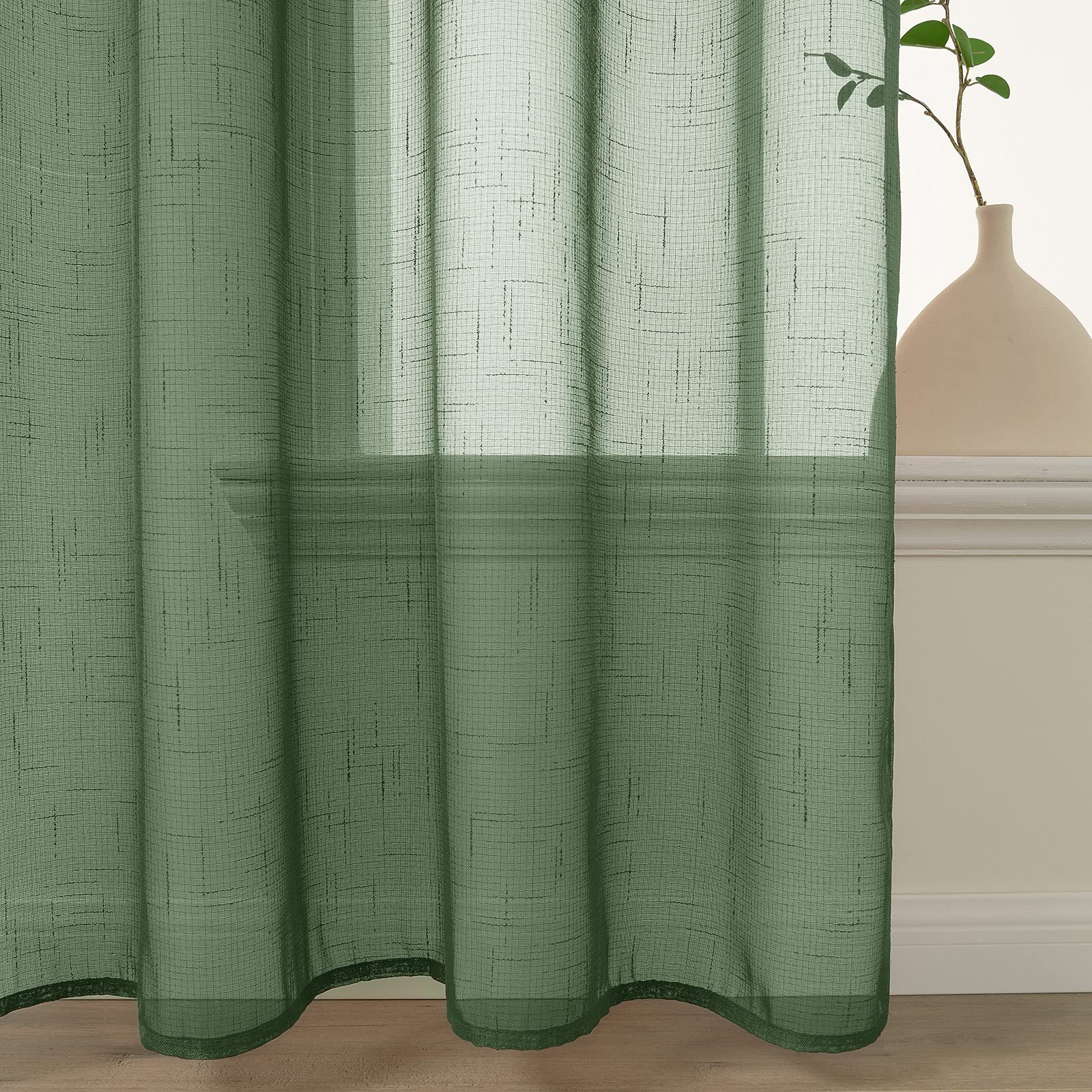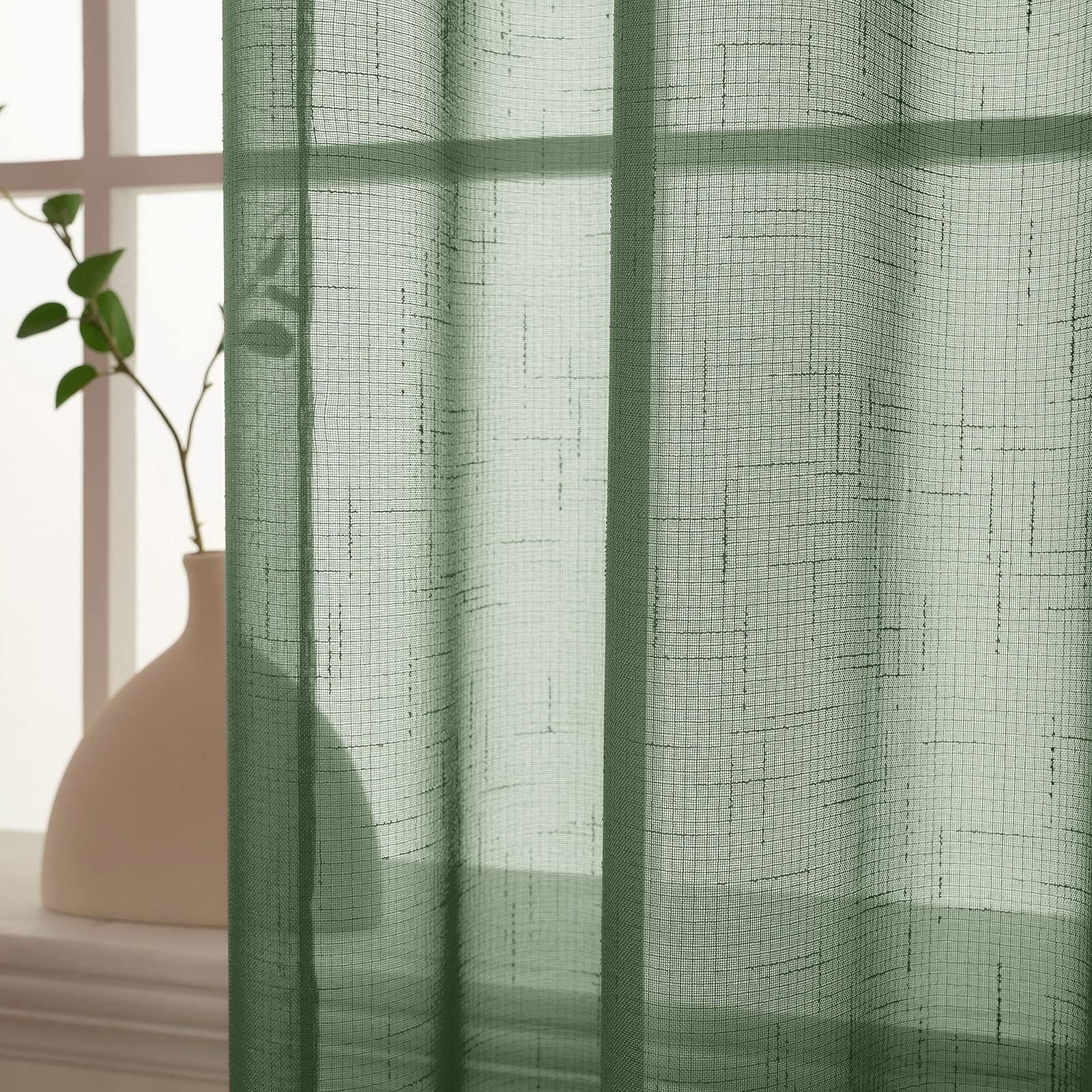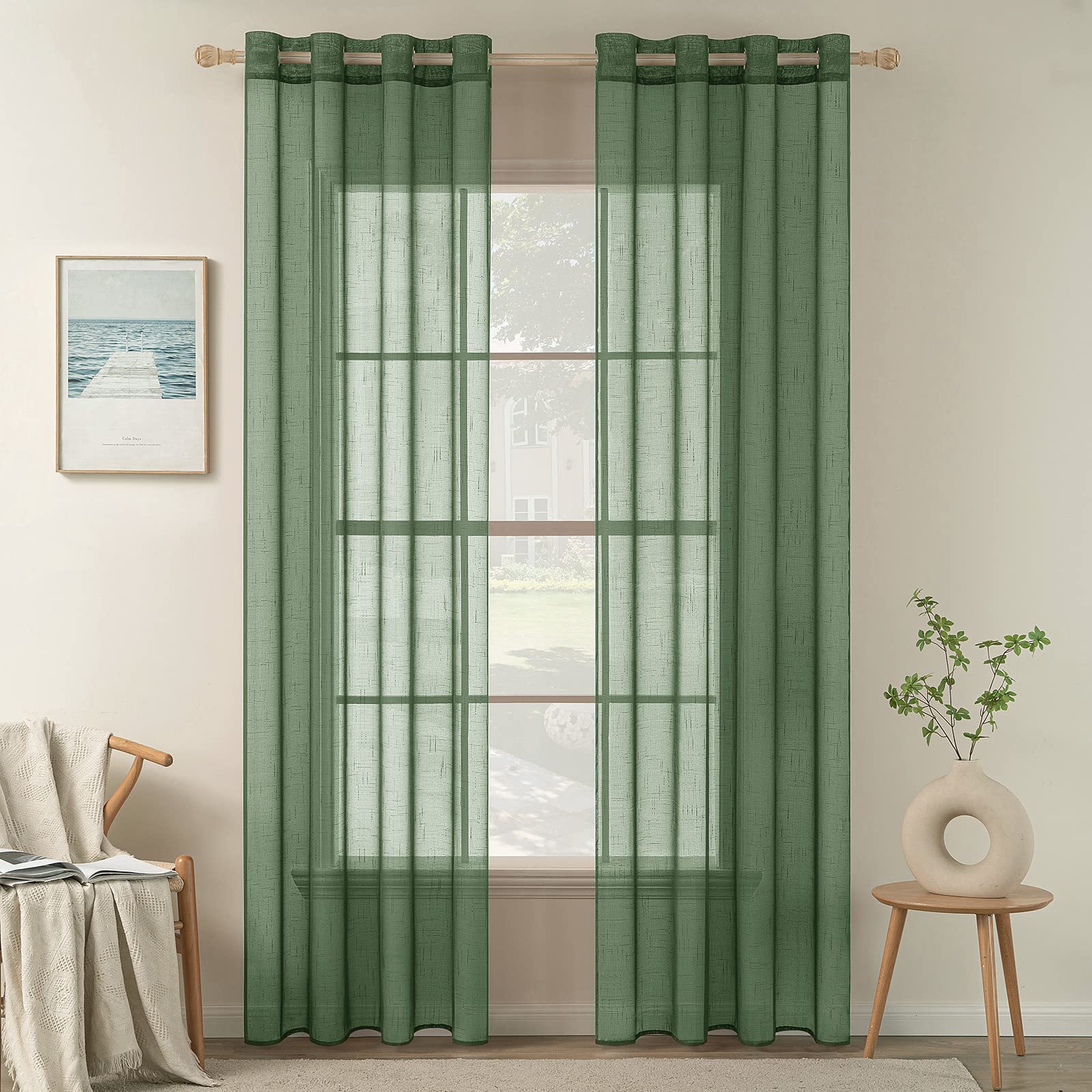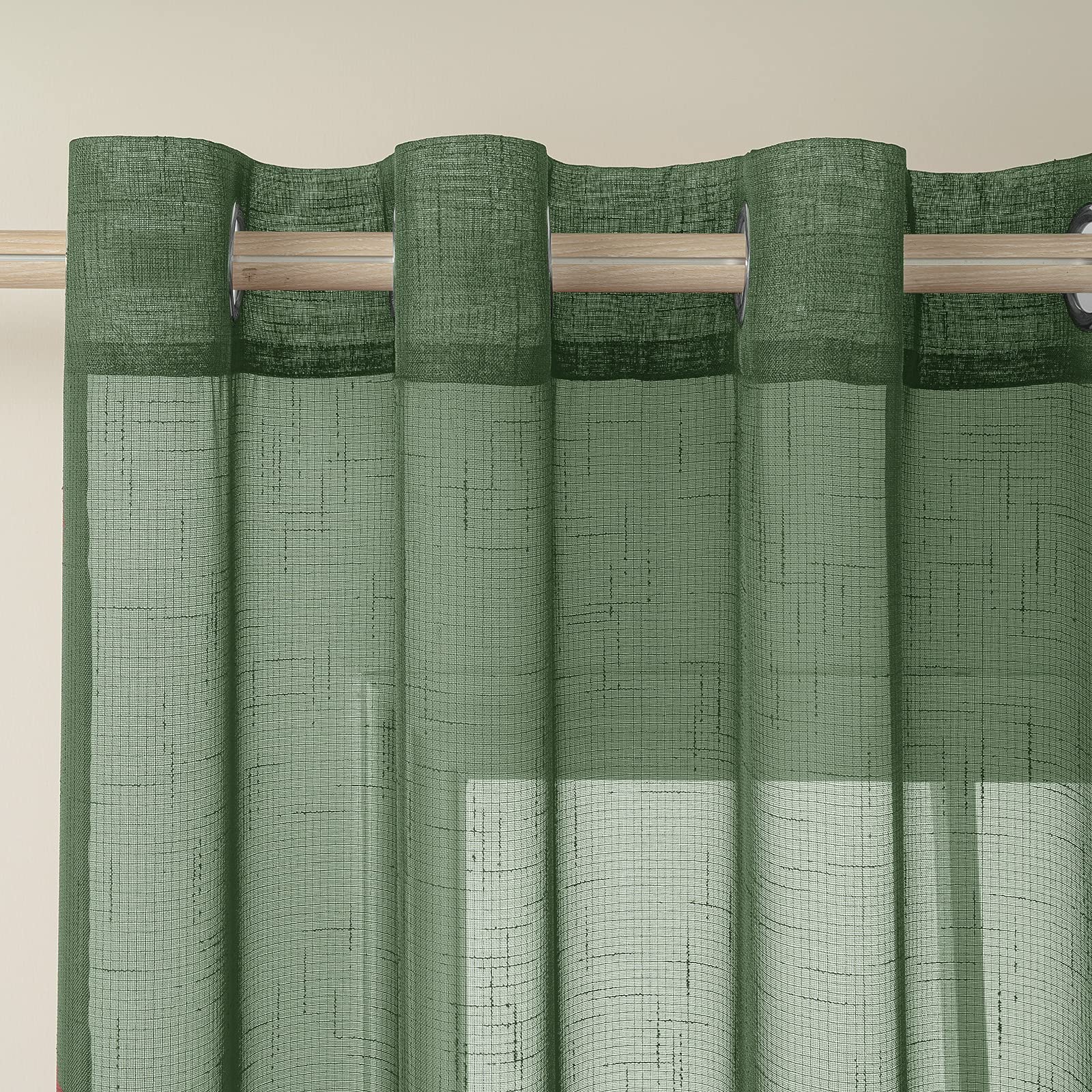 MIULEE Tende Lino Trasparenti Verde Scuro con Occhielli, 2 Pannelli 140L x 175A cm - Tende Soggiorno & Camera da Letto Filtranti Luce per Interni