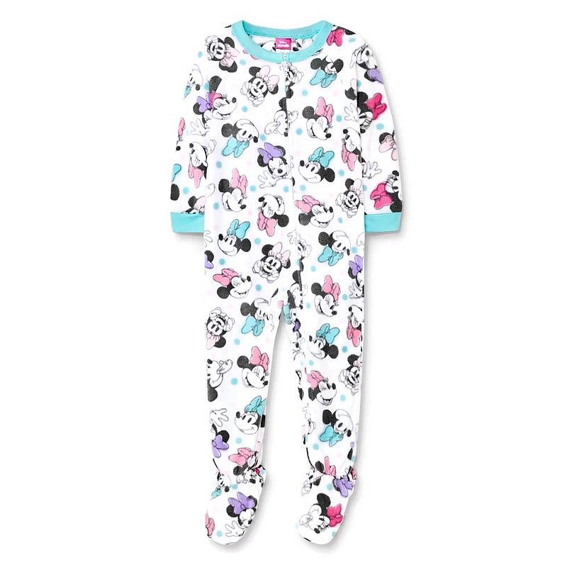 It's Minnie Mouse in a super cute and fun print surrounded by teal blue polka dots.