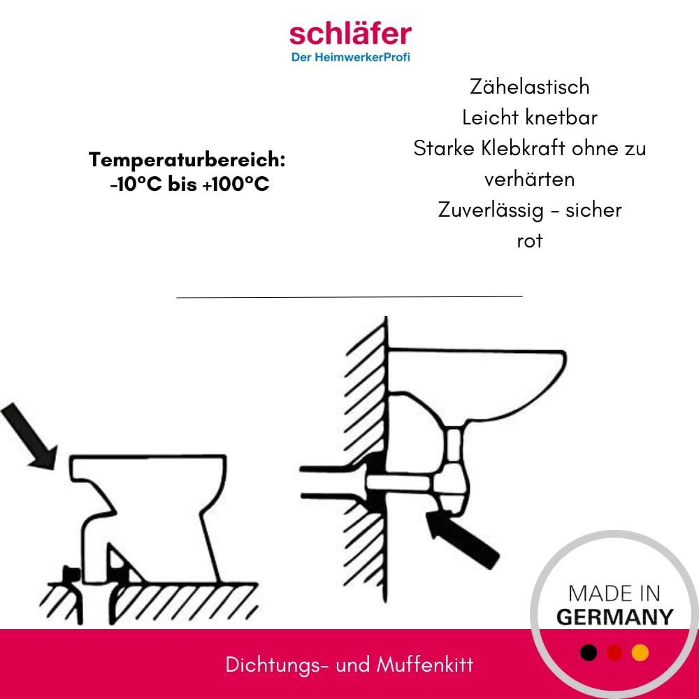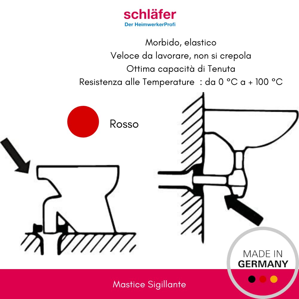 Schläfer 185900 | Mastice Rosso Sigillante Elastico Aqua-Fermit, Ottima Tenuta, Stuco per Tubi di Scarico Acqua e Impianti Idraulici, Confezione da 500gr