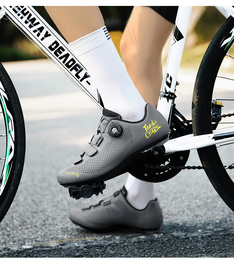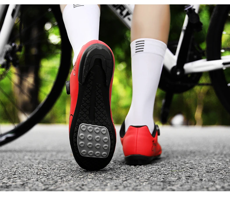 Compatibility with Cleat Systems: Men's cycling shoes are designed to be compatible with various cleat systems, such as SPD-SL, Look, or Speedplay, depending on the type of cycling being done. This ensures flexibility in using different pedal systems and allows riders to easily switch between different bikes or disciplines.