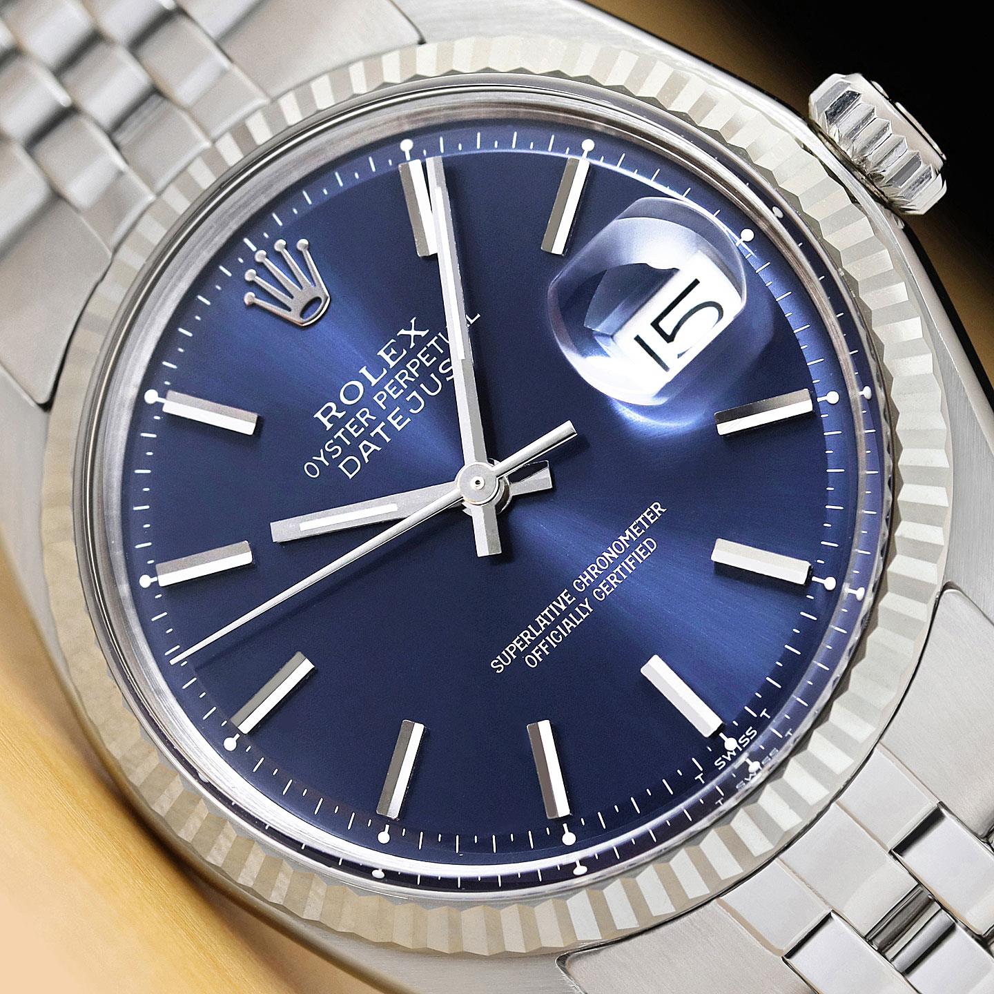 ROLEX MENS DATEJUST 1601 18K GOLD STEEL BLUE DIAL WATCH w/ FOLDED JUBILEE BRACELET