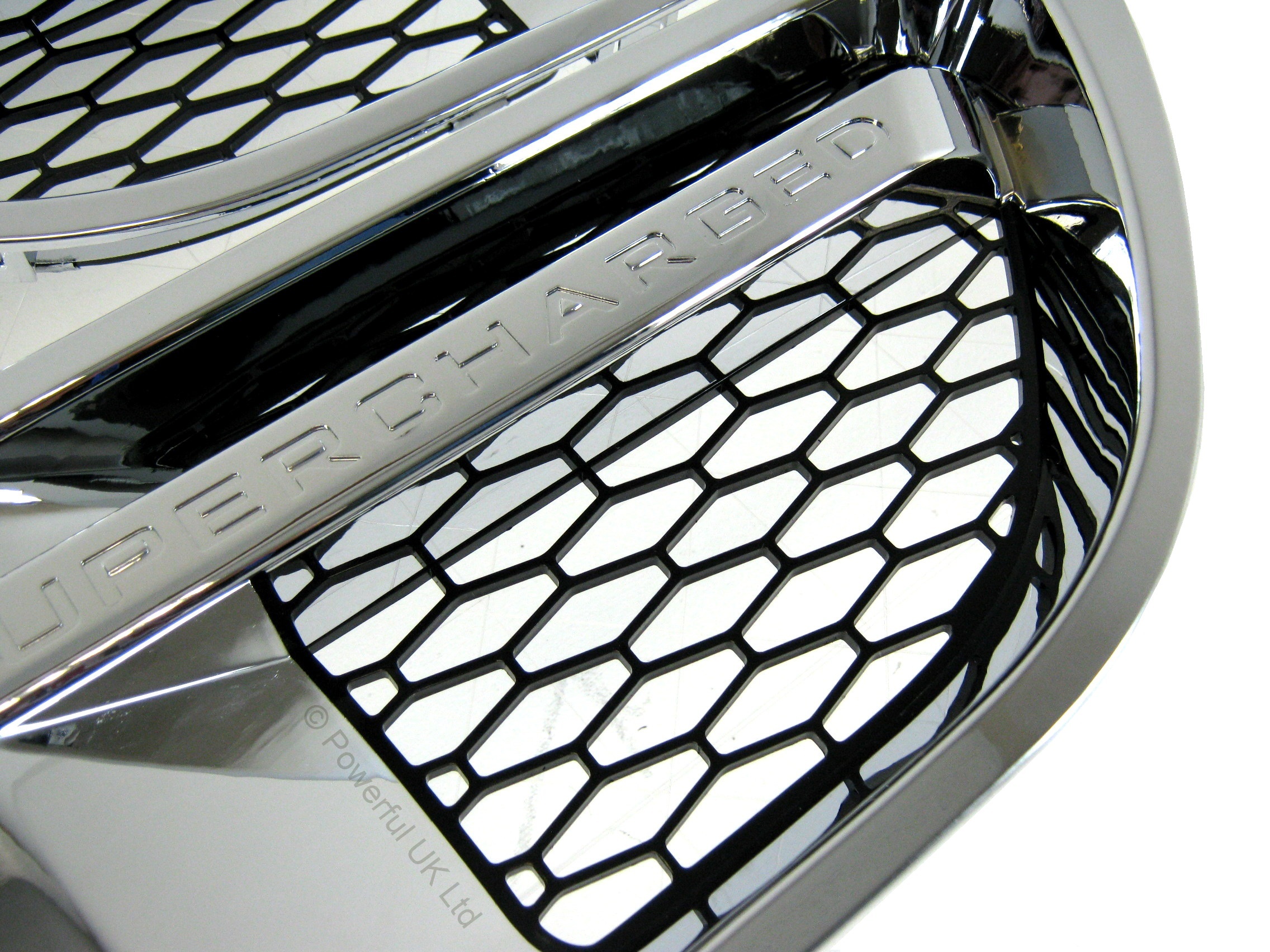 Replace the worn or damaged side vents on your Range Rover Sport with these chrome & gloss black "SUPERCHARGED" side vents.