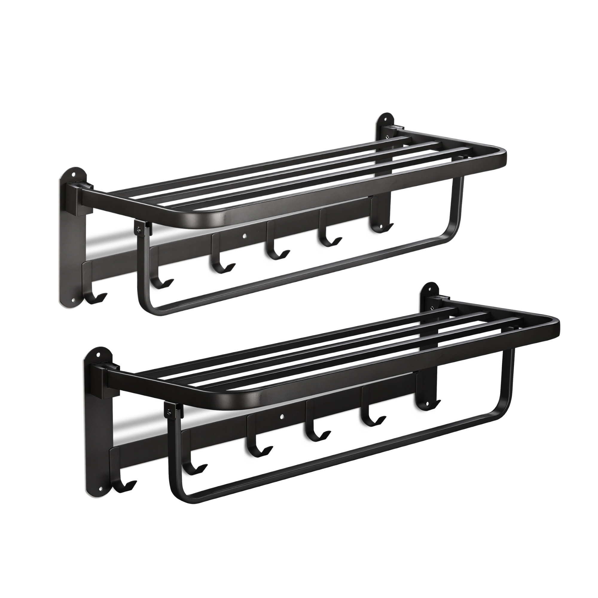 - Multifunctional - Aquaterior Wall Mounted Towel Rack features 2 layers to meet versatile storage needs, upper shelf for storing bath towels & clothes, lower shelf with towel bar & 6 hooks for extra hanging needs, keeping towels & other items clean & orderly
