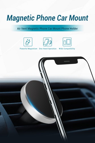 This stylish magnetic car phone mount provides a simple and easy solution to mounting your smartphone to the dashboard of your vehicle.