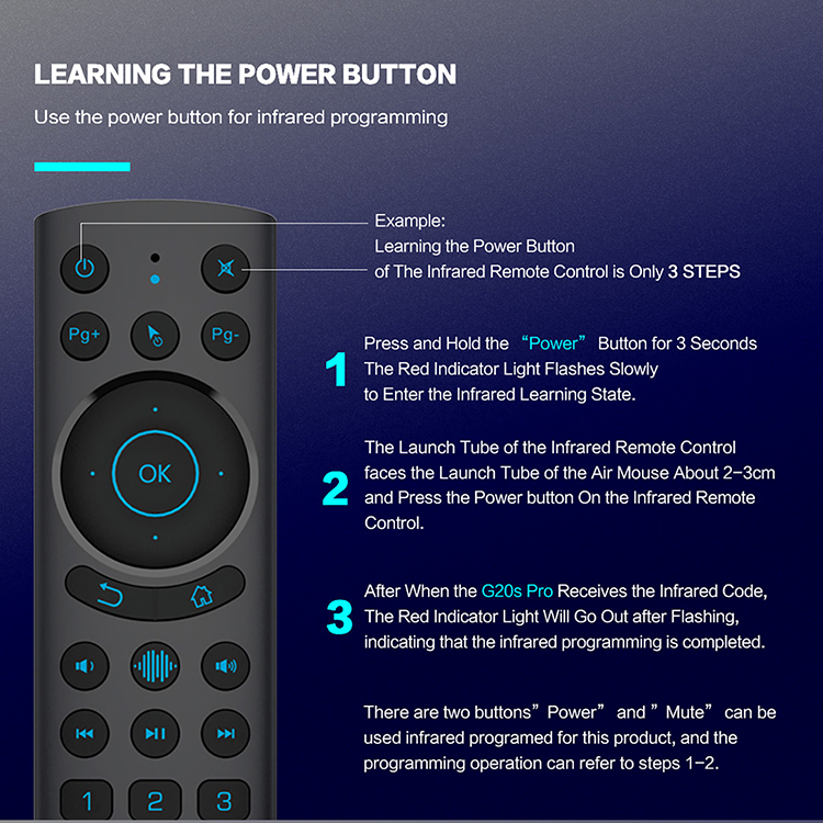 Power, mute two keys to support infrared learning