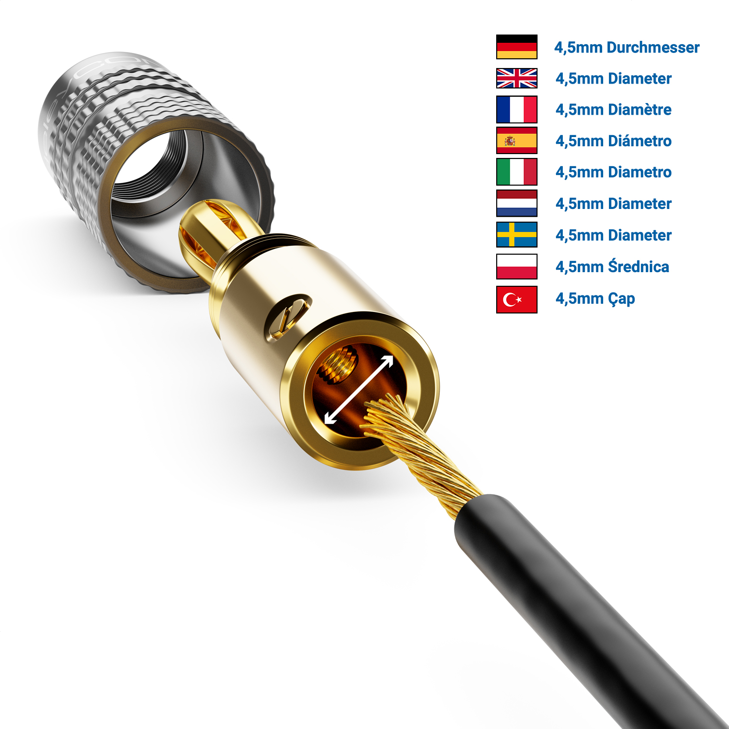 Alleskönner: Für Lautsprecherkabel & Boxenkabel mit einem Durchmesser von 0,75 mm bis 4,5 mm