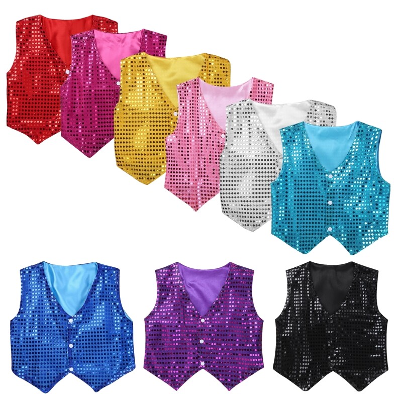 US Girls Boys Sequins Dance Vest Top Waistcoat Hip Hop Jazz Performance Costume