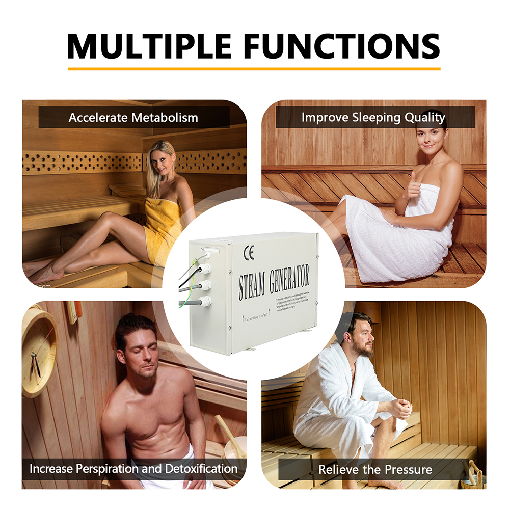This 3KW Steam Generator with the model of TR-019 multi-functional panel controller is suitable for home SPA Sauna and bath shower. Its high quality has been proven by many buyers from over 21 countries and still be popular for all these years along. It prevails in the steam generator industry and can satisfy most customers' requirements.