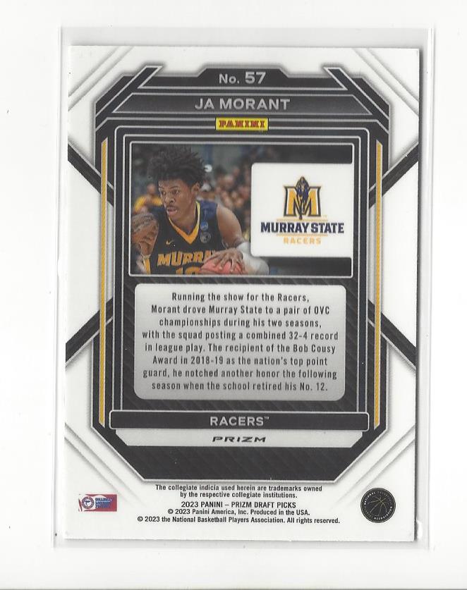 2023-24 Prizm Draft Picks Prizms Silver #57 Ja Morant Murray State Grizzlies