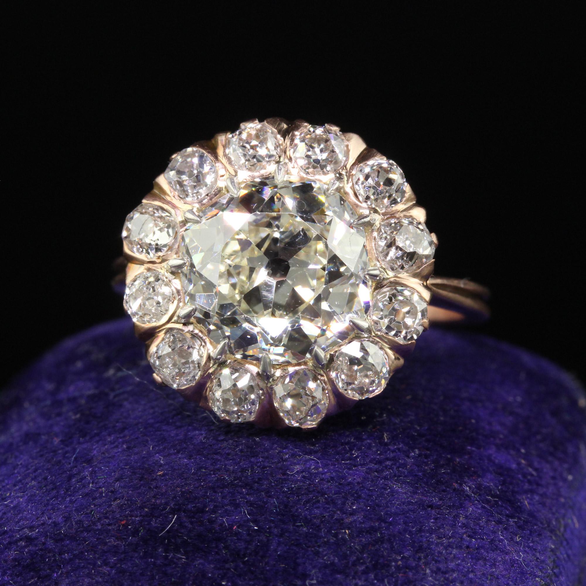 Beautiful Antique Edwardian 14K Rose Gold Old European Diamond Halo Engagement Ring - GIA. This gorgeous art deco engagement ring is crafted in 14k rose gold. The center holds a gorgeous chunky old cut diamond that has a GIA report and is surrounded by old cut diamonds around it. The diamonds are set in a gorgeous rose gold art decom setting and sits low on the finger. This ring is in great condition and has a gorgeous look.