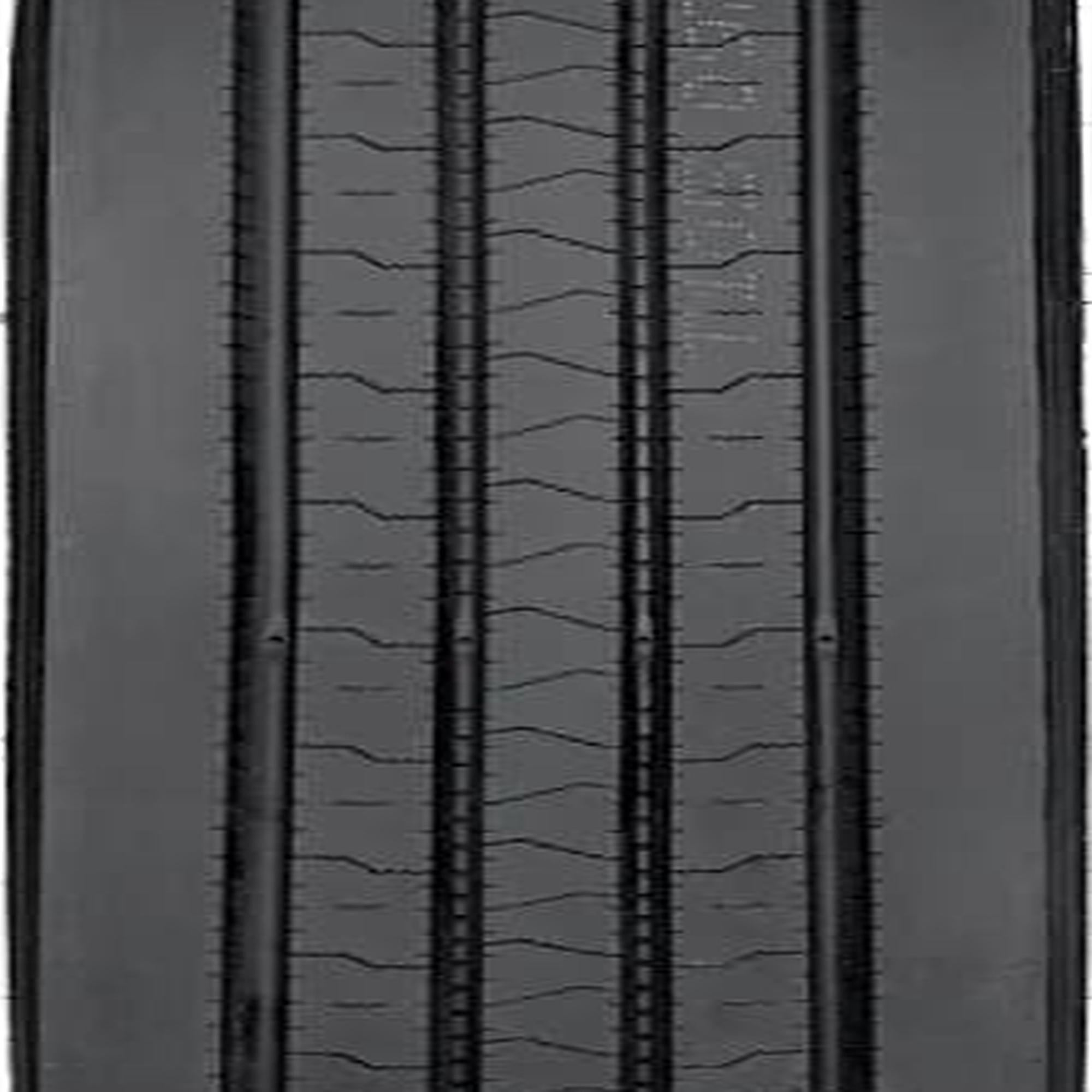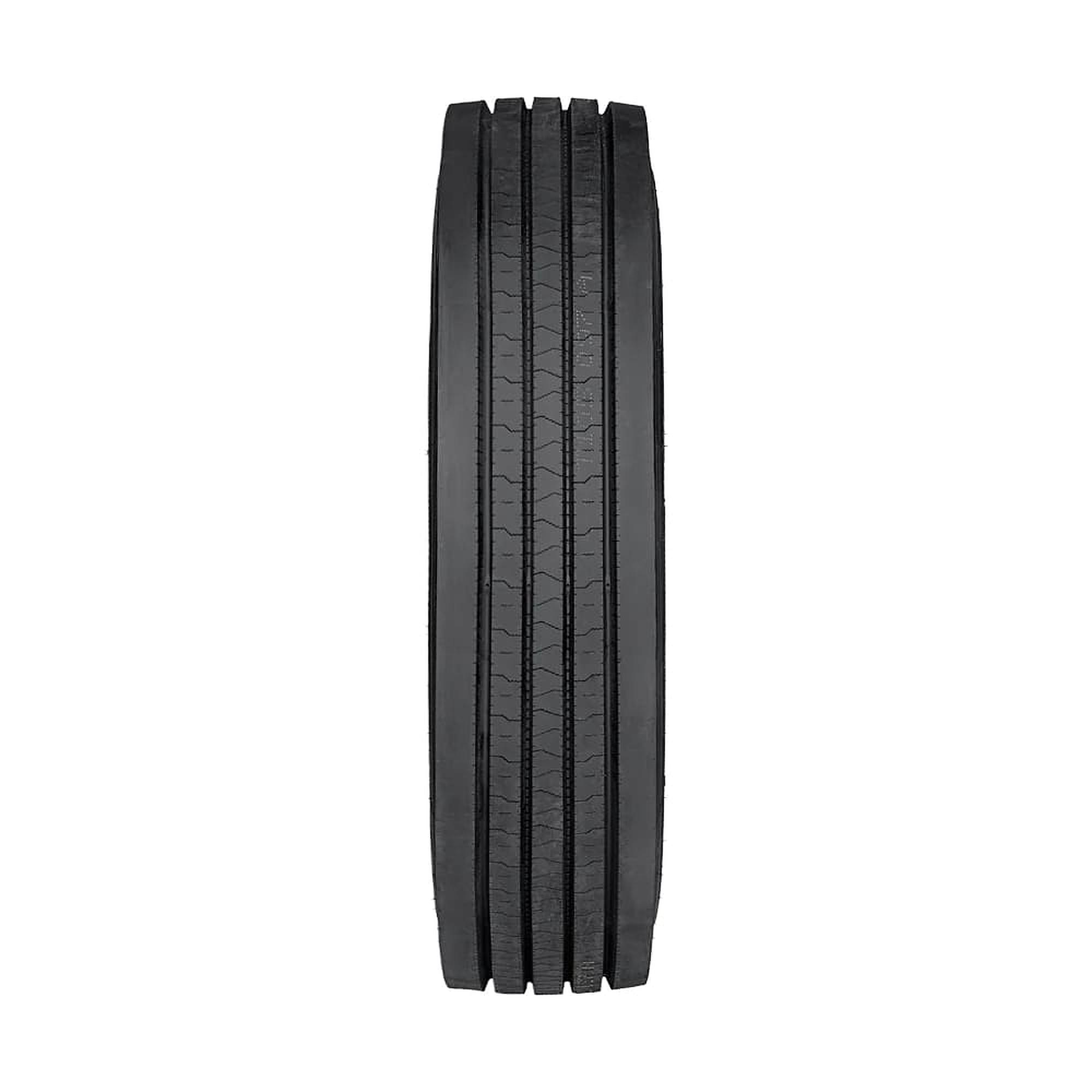 The Amulet AT505 is a commercial tire that's designed for use on all positions of semi-trucks. The durable structure and innovative tread pattern ensures a longer tread life, and the 5-rib tread pattern of the AT505 is optimized to evenly distribute load and driving pressures which reduces the chances of irregular wear. The reinforced structure prevents the tire from deformations, and the all-season rubber compound and ribbed tread pattern offer year-round traction in dry, wet, and light wintry conditions. Additionally, the wide and deep circumferential grooves of the tire evacuate water and slush from the footprint by reducing the risk of hydroplaning and increasing wet weather traction.