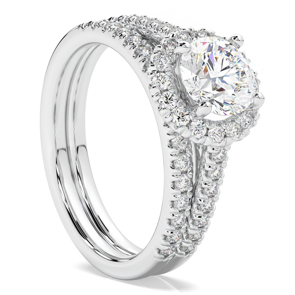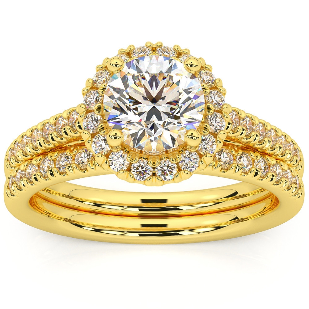 F/VS 1.50Ct Halo Diamond Engagement Wedding Ring Set 14k Gold Lab Grown
