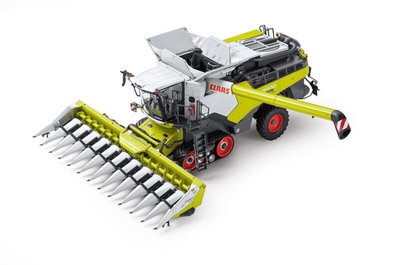 Experience the unparalleled craftsmanship of the CLAAS LEXION 8900 TT 1:32 Scale Combine, accompanied by the CORIO 1275 C CONSPEED Corn Head, an exquisite addition to any collector's showcase. Released in 2023, this meticulously crafted model captures the essence of its real-life counterpart with stunning accuracy. Limited to just 2000 pieces, each unit bears the hallmark of Marge Models' renowned quality, ensuring an investment-worthy addition to your collection. Embodying precision and attention to detail, this scale model boasts a TERRA TRAC treadmill width of 635 mm, a capacious 15,000 l grain tank, and a 4XL grain tank unloading tube. The newly developed CORIO 1275 C CONSPEED corn head enhances its realism, setting it apart as a must-have for enthusiasts. Delivered in a special CLAAS packaging, this model features functional elements such as foldable access ladder and wing mirrors, swingable grain tank unloader, and steerable rear axle, enhancing its authenticity. From the movable straw chopper to the vertically adjustable feeder housing, every component reflects the dedication to realism. With detachable cutterbar, transport trailer, and hydraulic connections, this model offers a dynamic portrayal of agricultural machinery at its finest.