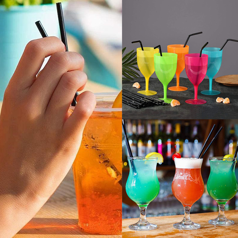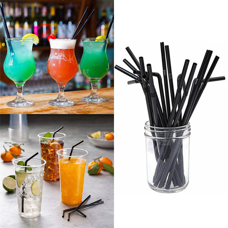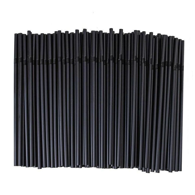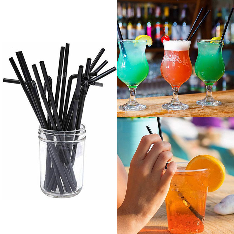 100 x black plastic cocktail straws