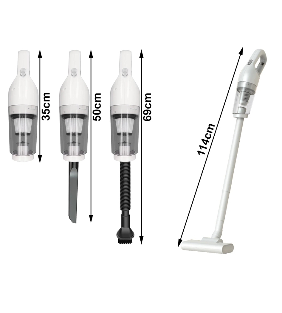 ASPIRAPOLVERE SENZA FILI SCOPA ELETTRICA SENZA SACCO RICARICABILE PER PAVIMENTI L'aspirapolvere cordless senza fili è la soluzione perfetta per una pulizia senza restrizioni. Libera dai cavi, ti permette di muoverti liberamente in tutta la casa. Con la sua comoda funzione di ricarica, hai sempre a disposizione l'energia necessaria per pulire senza interruzioni. L'aspirapolvere portatile è in grado di raccogliere anche le particelle più piccole di polvere e sporco. Sia che tu voglia pulire tappeti o pavimenti duri, questo aspirapolvere cordless ottiene jo b fatto in modo rapido ed efficace. grande tazza per la raccolta della polvere da 550ml L'aspirapolvere cordless è dotato di una tazza per la raccolta della polvere grande da 500ml, il che significa che non è necessario smettere e svuotarlo spesso. Questo rende la pulizia più veloce ed efficiente, consente di eseguire la pulizia in meno tempo. Caricabatteria al litio Built-in 1200mAh L'aspirapolvere portatile senza fili ha una batteria al litio integrata da 1200mAh, che fornisce un sacco di energia per le riunioni di pulizia estese. Non c' è bisogno di correre fuori dalla batteria nel mezzo di una pulizia j, e la batteria può essere ricaricata rapidamente dal cavo USB incluso. Per rendere la pulizia più facile, il nostro aspirapolvere cordless viene fornito con una spazzola per pavimenti e un tubo di collegamento da 2 pezzi. La spazzola per pavimenti è perfetta per la pulizia di pavimenti duri, mentre i tubi di connessione ti consentono di raggiungere spazi e angoli stretti. Il nostro aspirapolvere portatile è progettato per essere compatto e leggero, in modo che sia facile da trasportare e da usare ovunque tu abbia bisogno. Che tu voglia pulire la tua casa, l'auto o l'ufficio, questo aspirapolvere portatile è lo strumento perfetto per la pulizia Specifiche: Potenza nominale nominale: 120W Forza di aspirazione: 8000pa Grado di vuoto: 6500pa Tazza per la raccolta della polvere: 500ml Tensione di esercizio: 7.4V Tensione di carica: 8.4V Corrente di carica: 0. 5a-1A Capacità della batteria: 1200mAh Tempo di ricarica: circa 3.5h Lista di imballaggio: 1 * aspirapolvere 1 * spazzola per pavimenti 1 * spazzola per tubi Spazzola per paglia piatta 1*2 in 1 2 * tubi di collegamento Carica USB 1 * Dimensione MAX 106 cm