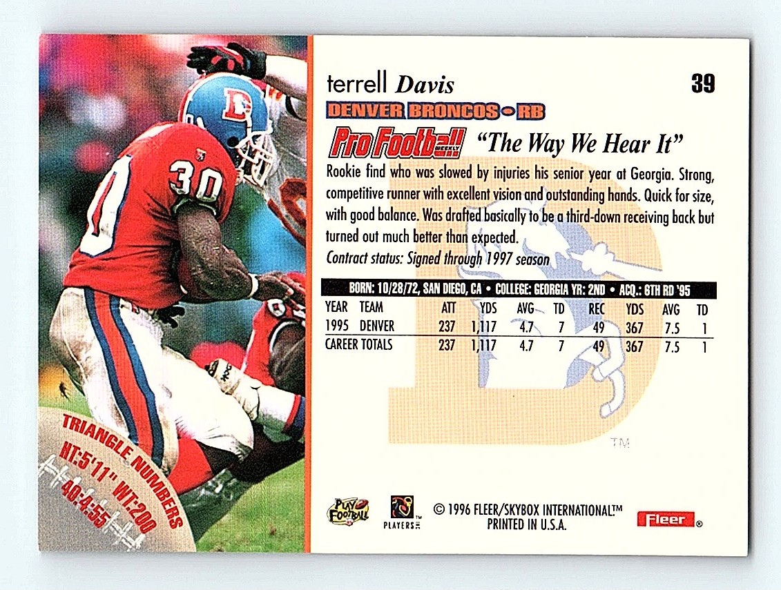 | 1996 Fleer Terrell Davis Denver Broncos #39 | ||||||||||||||||