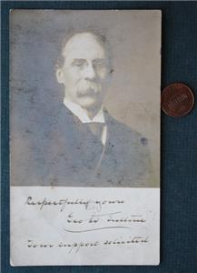 Check it out...Here's an UNCOMMON 3 1/4" wide by 5 1/2" tall VINTAGE real photo postcard of 1906-09 Pittsburgh, Pennsylvania Mayor & Japan Ambassador George W. Guthrie-The sepia toned silver gelatin RPPC photo has a facsimile signature signed "Respectfully yours Geo. W. Fuller. Your Support Solicited" on the front. Unused with postcard backer on the back-How many of these survived?