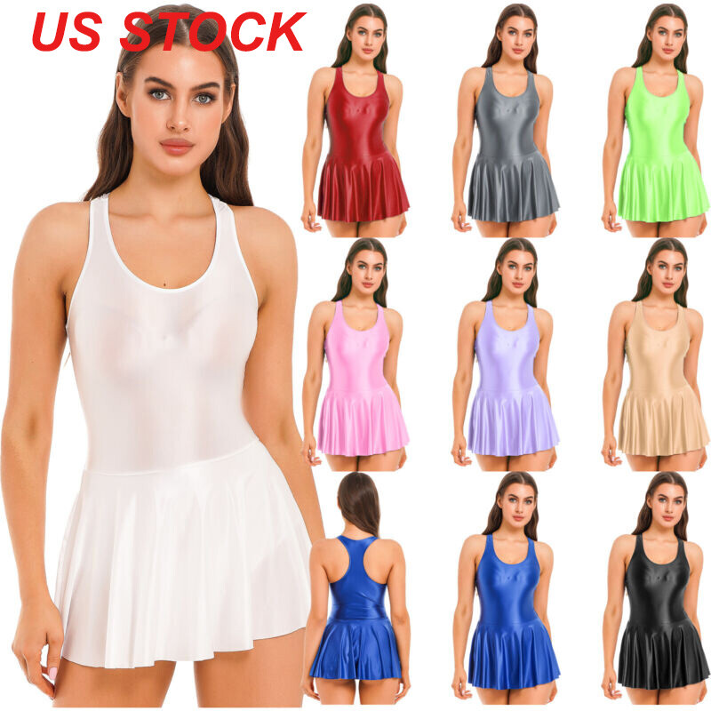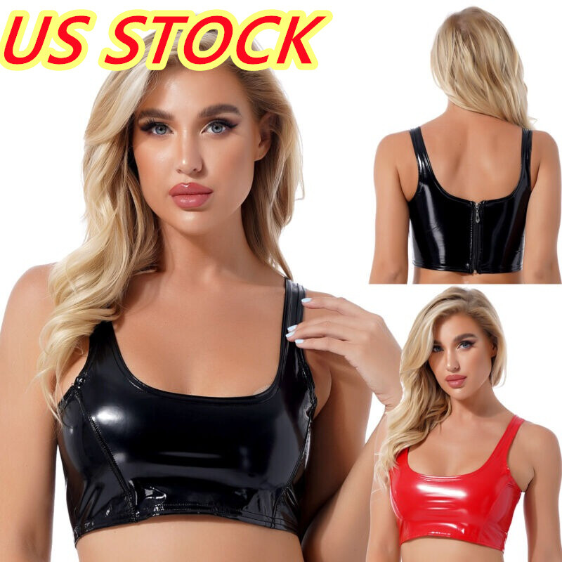 US Women Leather Mini Dress withThong Bodycon Deep VZipper Front Party Clubwear