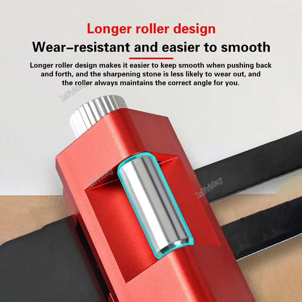 2.Upgraded 1.6'' Wide Roller:With the widened roller at the bottom, you could just scroll back and forth to sharpen your chisel, much easier and smoother than the old small-bearing wheel.
