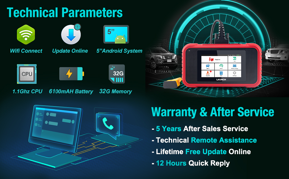 1. Android-System: LAUNCH CRP129E V3.0 ist ein Android-System-obd2-Scanner, der integrierte Wi-Fi-Module für Online-Updates enthält und mit einem 5-Zoll-720p-LCD-Touchscreen ausgestattet ist, der größer als crp129 (3,5 Zoll) ist mit einer einfach zu bedienenden Oberfläche.