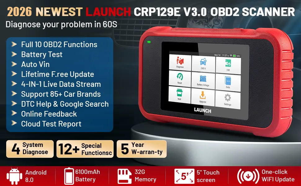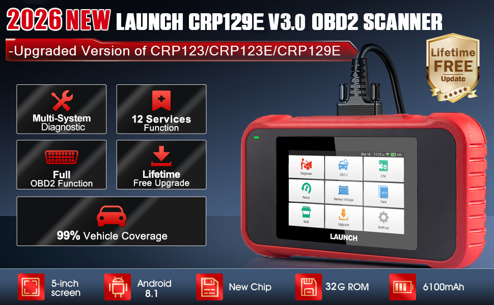 2026 Neueste Ausgabe LAUNCH CRP129E V3.0: Neu hinzugefügt---DPF-Reset/Injektor-Kodierung/Batterie-Reset. Signifikante Vorteile!!! Add New 3 Reset-Funktionen(Jetzt mit insgesamt 12 Reset Services). LAUNCH CRP129E V3.0 obd2 diagnosegerät mit 4 Systemdiagnosen + 12 Reset-Services, um Ihre Fahrzeugsysteme sicher und effizient zu warten. Ein-Klick "Upgrade"-Betrieb zu erhalten 3 Add Reset-Funktionen.
