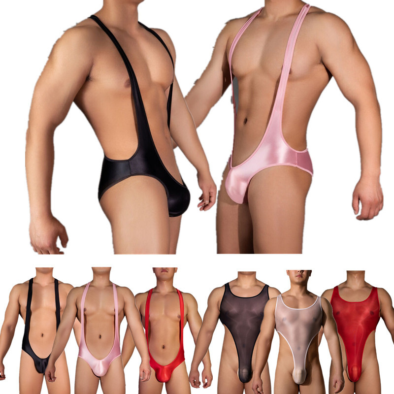 US Mens Oil Glossy Sport Bodysuit Sleeveless Leotard Wrestling Singlet Underwear