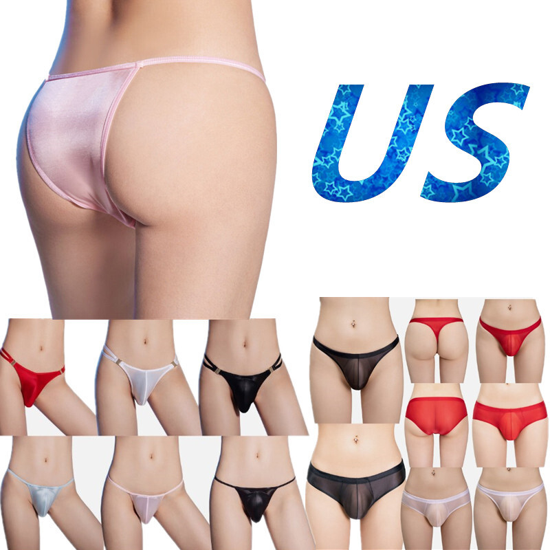 Men Sissy Satin Underwear Thong Lace Patchwork Panties G-string Briefs T-back.