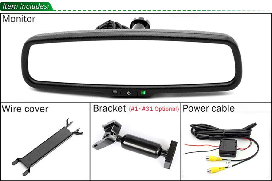 * Electronic auto dimming car rear view monitor.