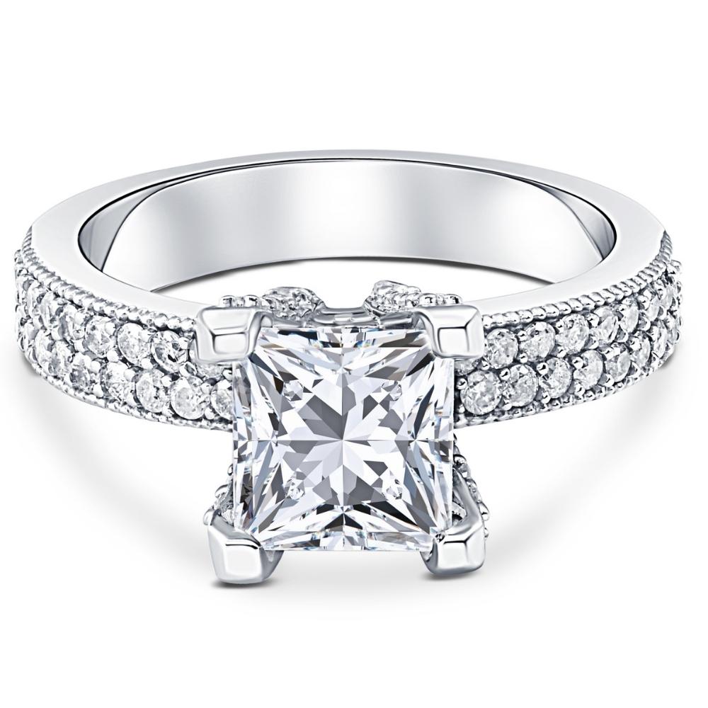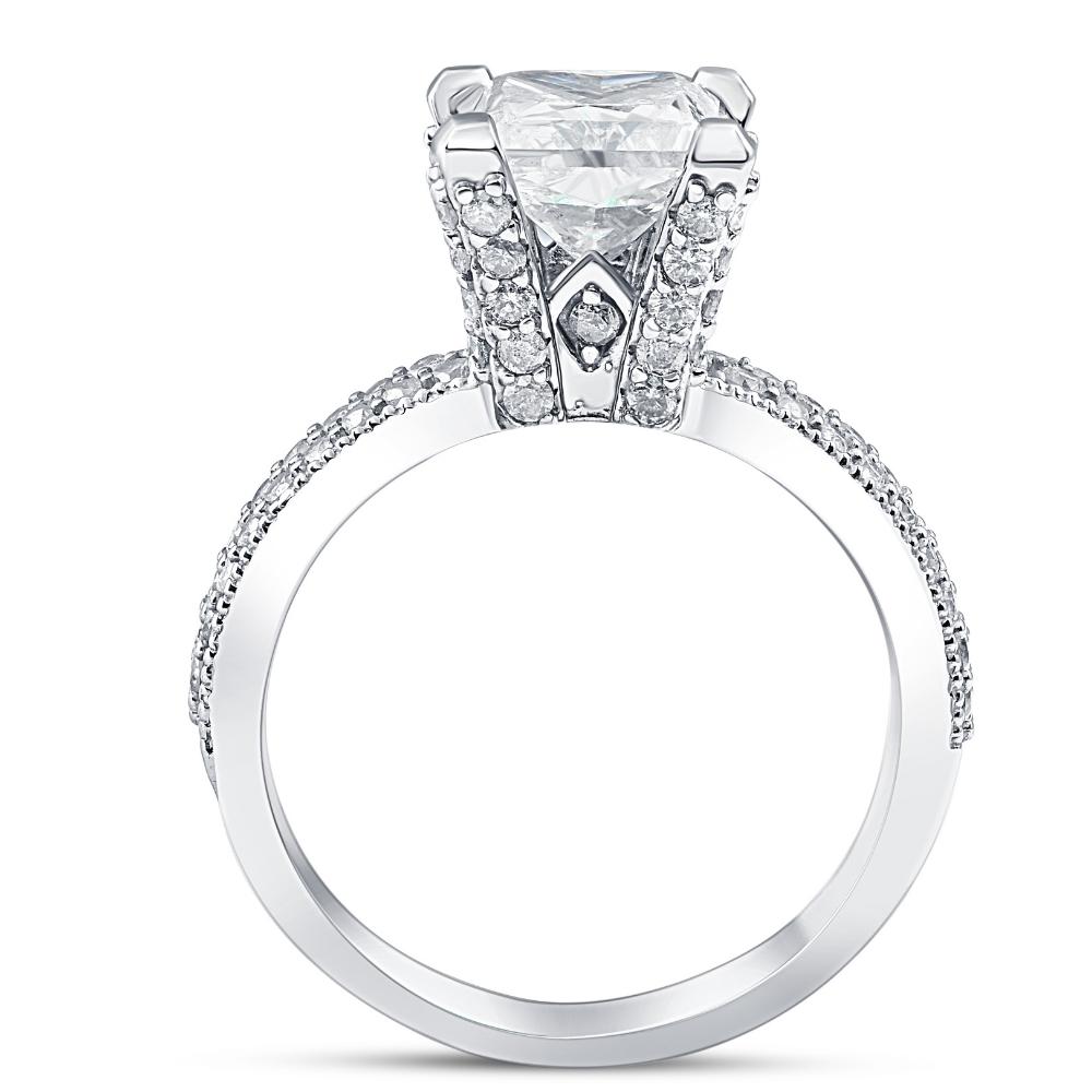 Certified 2 7/8ct Princess Cut Pave Lab Grown Diamond Engagement Ring White Gold