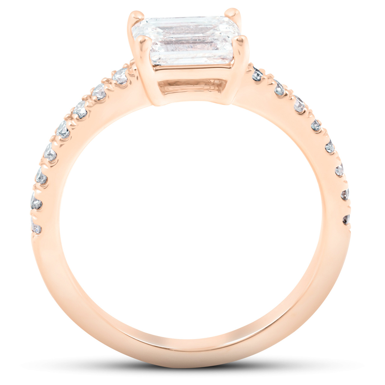 1 1/2Ct Sideways Emerald Cut Moissanite & Diamond Engagement Ring 14k Rose Gold