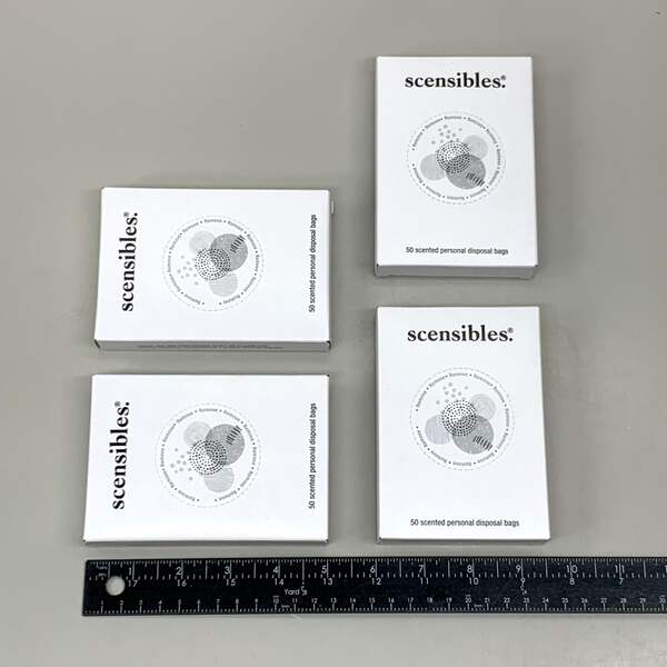 SCENSIBLES 4 PACK! 200 Bags Total Scented Personal Hygiene Disposal Bags Condition: New Size: 4 Pack / 200 Bags Total Model: SBX50 Description: Built-in Antimicrobial Inhibit the Growth of Odor-Causing Bacteria on the Bag Patterned to Hide Contents in the Bag Help to Minimize Exposure of Possible Blood-Borne Pathogens and Harmful Germs Bags Contain 20% Pre-Consumer Recycled Material Easy 4 Handle-tie Closures Help Conceal Contents Pink on Pink Flower Pattern Masks Contents