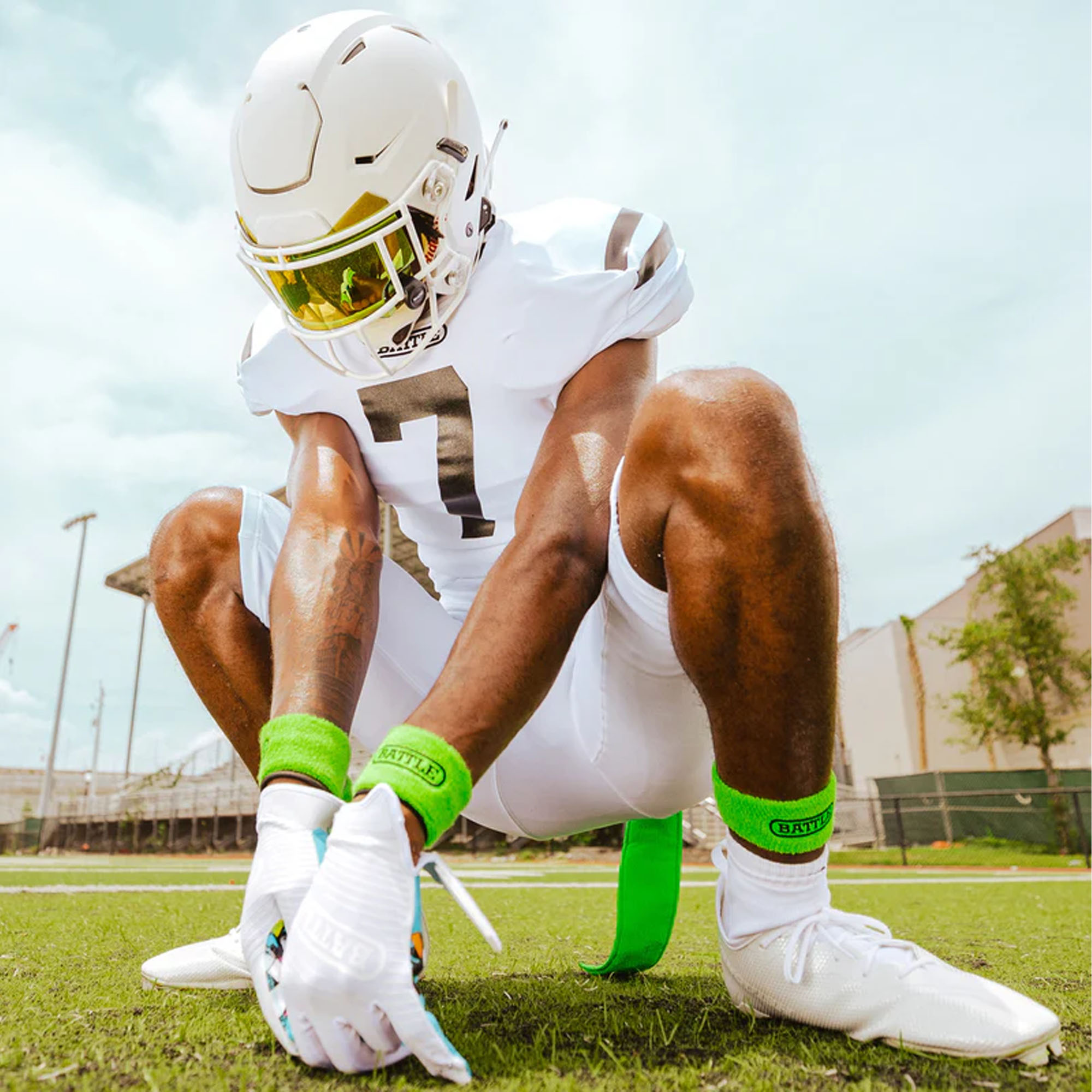 Stay cool and focused with Battle Sports Thick Arm Bands for football. Designed to wick moisture away, this accessory keeps you dry comfortable on the field. This helps to keep you focused on the field and ensuring you maintain peak performance throughout the game. The ultra-soft material and ergonomic design provides a snug and comfortable fit without restricting your movement. With the Battle Sports Football Arm Bands, you will look like a pro and feel like one, unlocking your full potential on the field. Say goodbye to sweat and discomfort and dominate the competition. Don't wait, elevate your game today!