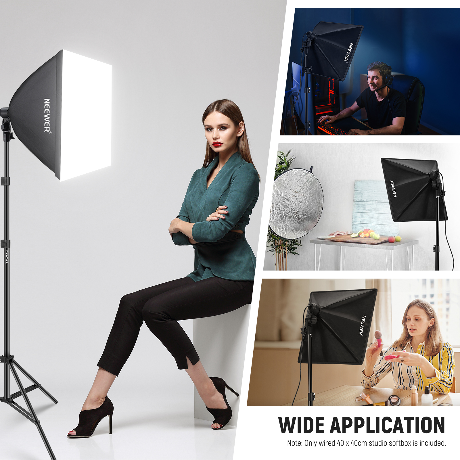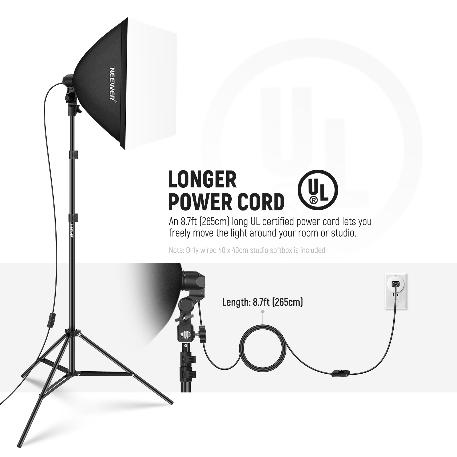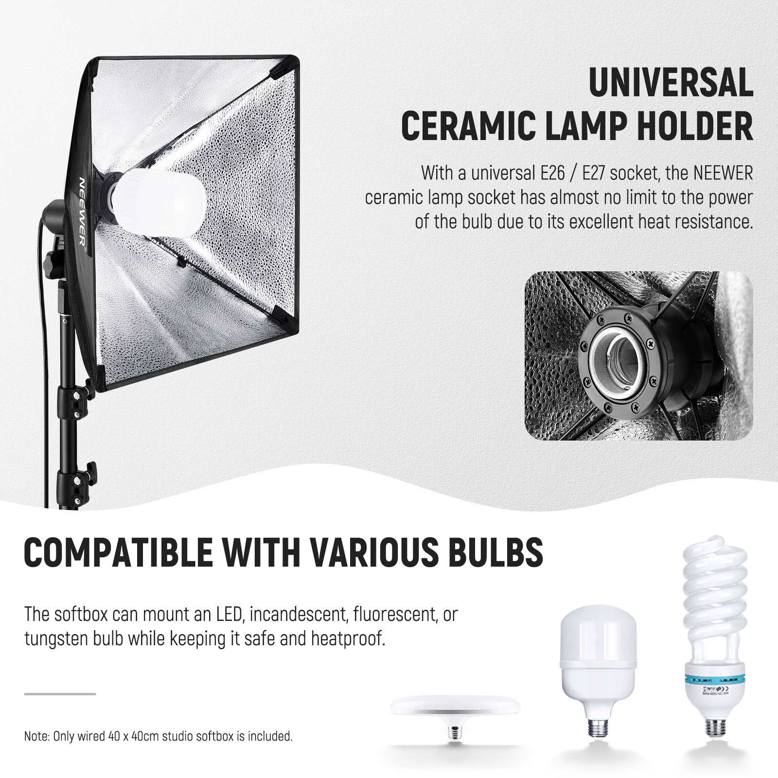 NEEWER 16x16in/40x40cm Softbox with E26 Porcelain Socket/UL Certified Power Cord/White Diffuser/Stand Adapter, Durable Nylon Softbox Lighting Modifier for Studio Photography Lighting, SF4040 (US Plug)