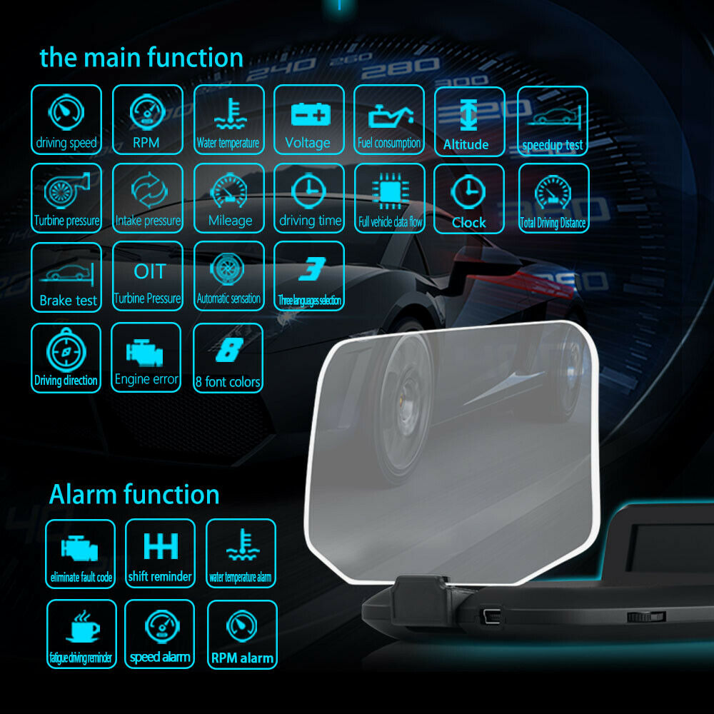 CAR HUD comes from the display technology of the fighter aircraft and displays the car dashboard information (eg speed, RPM, water temperature, voltage, trip distance, etc ) on the own anti-glare plexiglass without affecting the driver's line of sight. Keep the Driver's eyes always on the road to avoid the dangerous of lowering down head to read the dashboard.