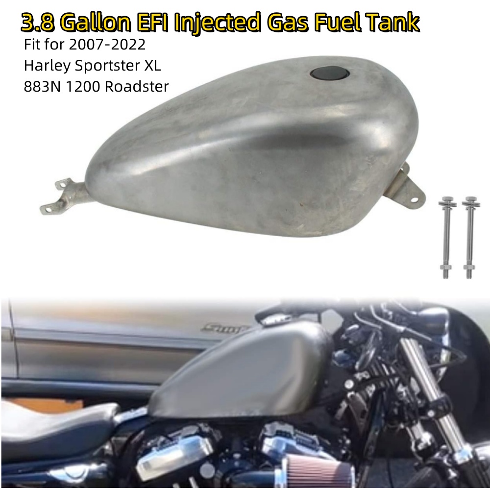 Specification Brand New Color/Finish: Natural EFI Smooth Tank for 07 up Harley XL Sportsters Screw Cap These tanks accept the stock fuel pump. Measurements Length:21" Mounting Holes Center to Center:23" Height Front: 9" Width at Widest Point: 10.5" Package include 1 x 3.3 GAL EFI XL Tank Standard screw(as the pictures) Raised custom cap(as the pictures) Fitment 2007-UP Harley Davidson Sportster XL Models PLEASE NOTE Professionals install is strongly recommended to avoid trouble caused by inexperienced installer! Please Read All Description and Fitment Before Ordering the Product.Motorcycle Fuel Tank 14.4L 3.8 Gal Oil Gas Tank Injection Vintage For Harley Sportster XL 48 Iron 883 1200 72 Super Low 2007-2023
