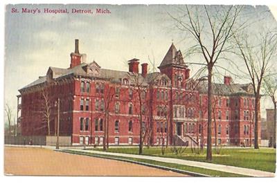 This vintage Postcard is from Detroit, Mich. St. Mary's Hospital; divided back has message, stamp and cancellation; Detroit, Mich. Nov. 1911; has upper corner tip surface wear. item is in good codition (see scan).