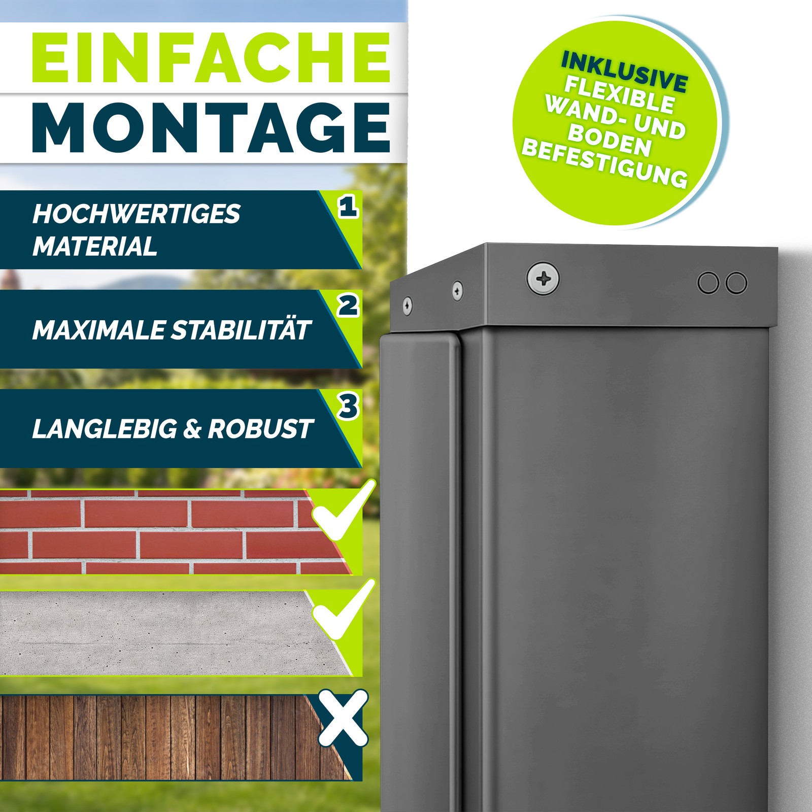 ROBUST & WITTERUNGSBESTÄNDIG: Unser Seitenrollo ist aus hochwertigem, rostfreiem Stahl gefertigt, sowohl Pfosten als auch Kassette gewährleisten damit maximale Stabilität und Langlebigkeit. Die widerstandsfähige Konstruktion ist darauf ausgelegt, Ihre Privatsphäre langfristig zu sichern. Der robuste Stoff und die Stahlkomponenten bieten zuverlässigen Schutz vor Witterungseinflüssen und garantieren eine lange Lebensdauer Ihrer Markise.