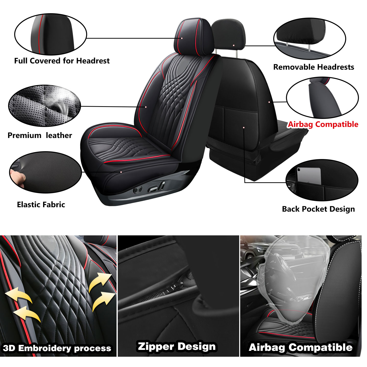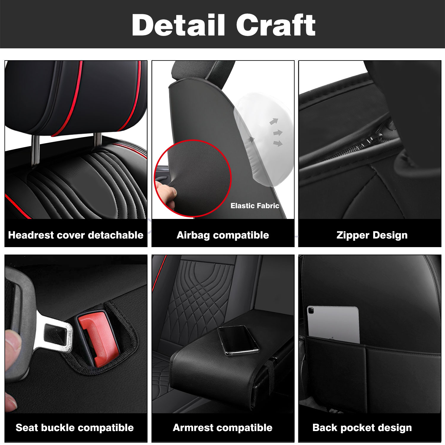 COMPATIBLE AIRBAGS: The seat pillow cover has been upgraded to a detachable, and the side straps for fixing are almost hidden. The airbag has enough room to stretch and will never be blocked. The front seat back has pockets for the things you want to put.
