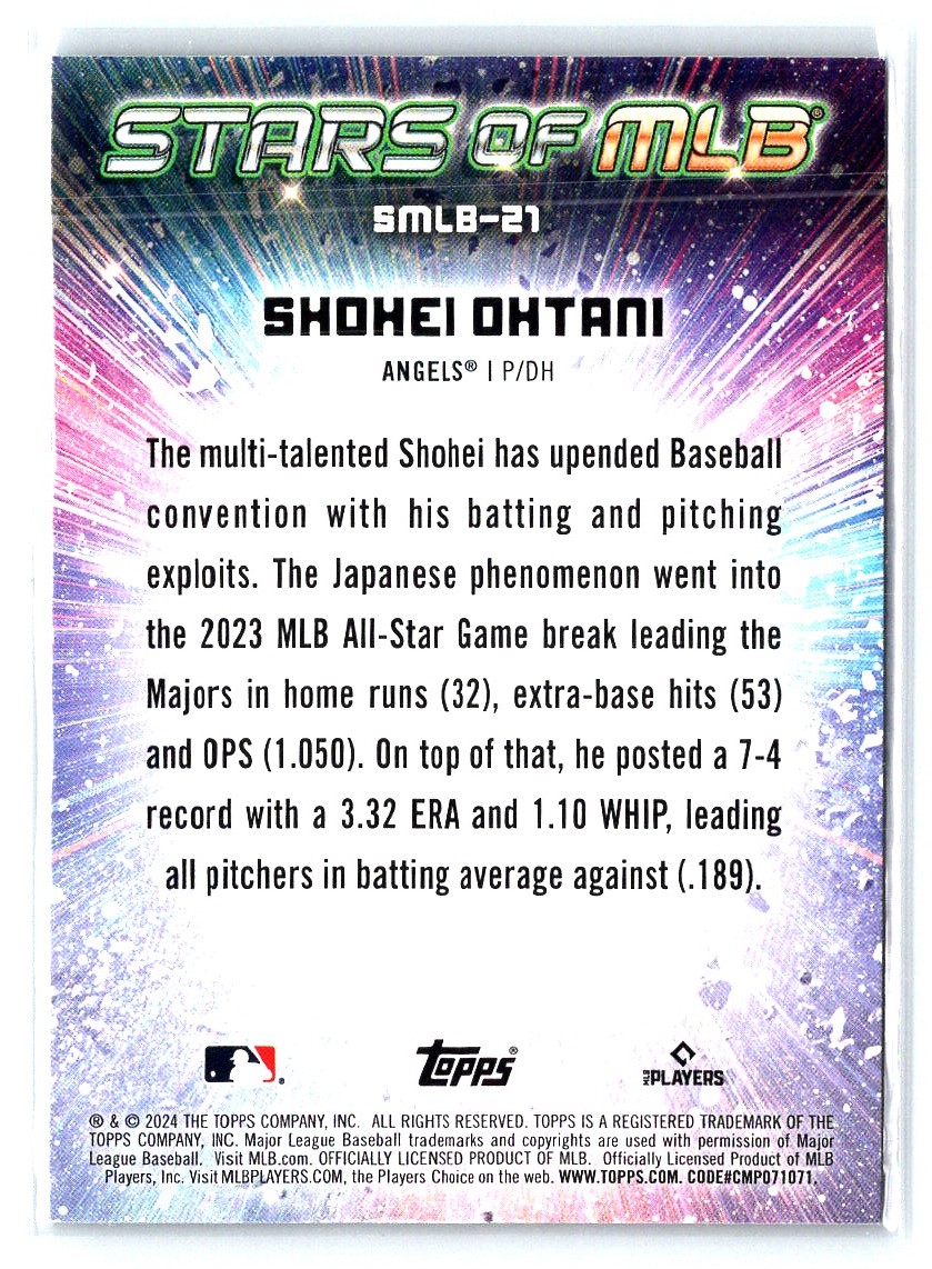 | 2024 Topps Series 1 Stars of MLB Shohei Ohtani Los Angeles Angels #SMLB-21 | ||||||||||||||||