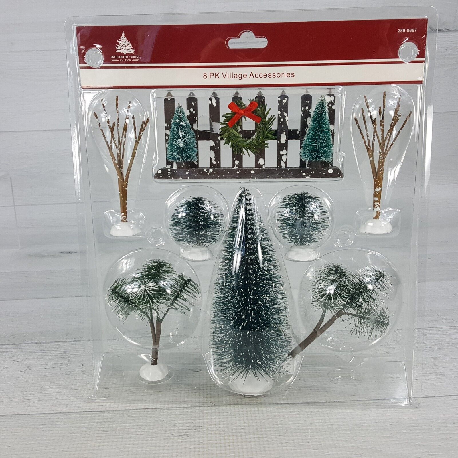 Enchanted Forest Christmas Village 8pc Set Bottle Brush & Bare Trees & Fence NEW
