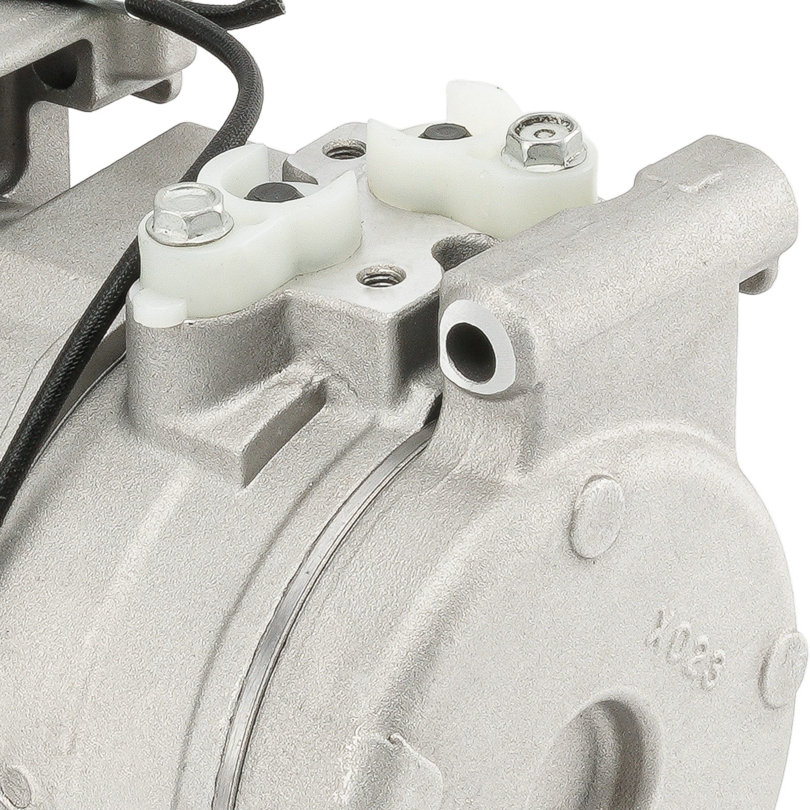 - Position the new A/C compressor and secure it using the provided bolts, ensuring alignment.