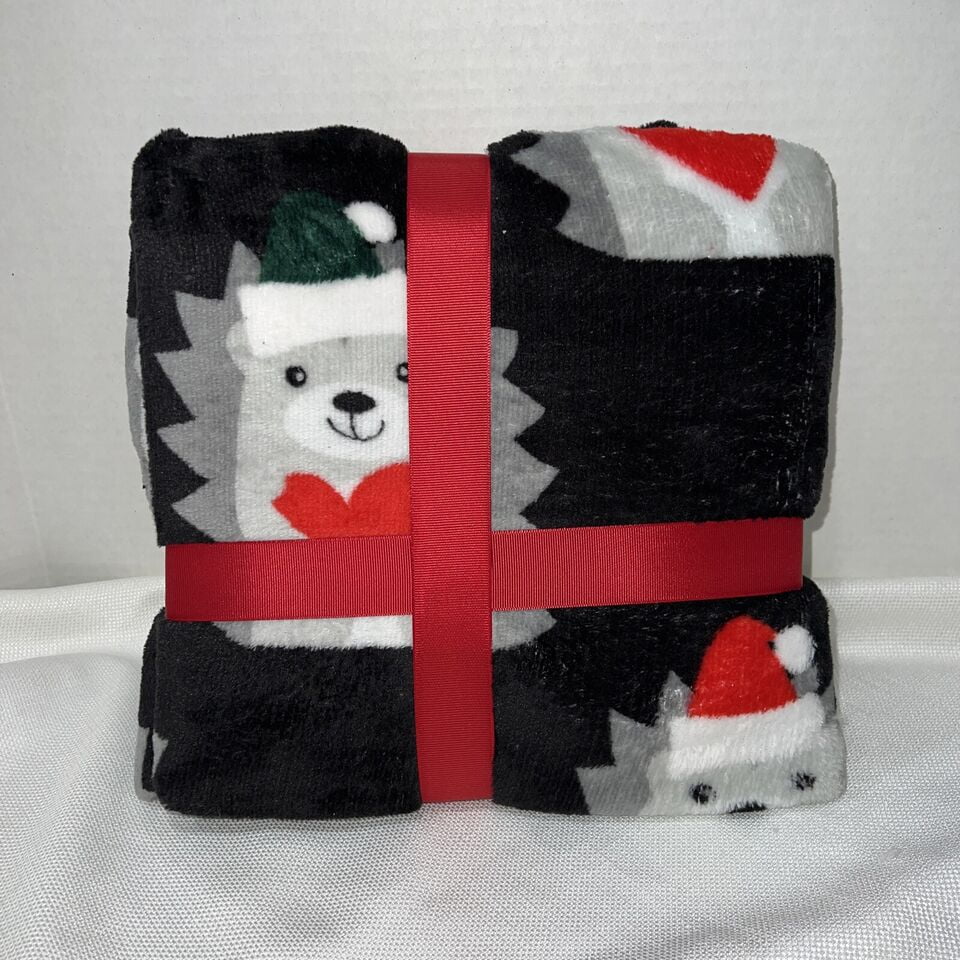Santa Hat Hedgehog with Hearts Pattern Fleece Christmas Throw Blanket 50" x 60"
